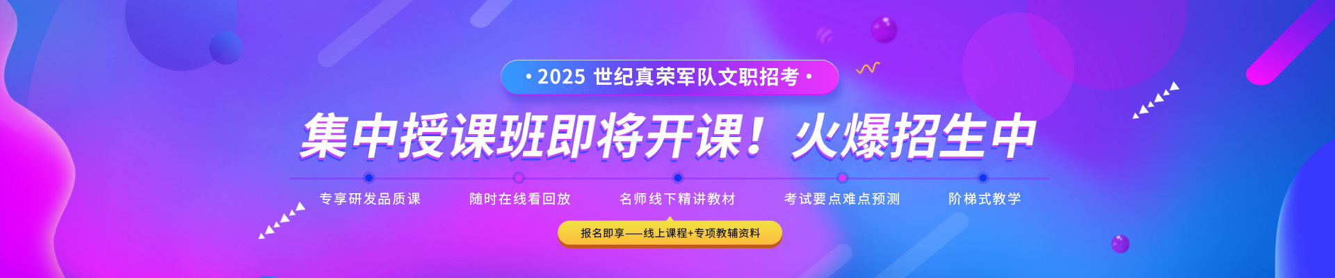 世紀真榮培訓中心自成立以來,一直為廣大考生提供專業、優佳、準確的政策咨詢、講義試題以及課程輔導服務。世紀真榮培訓中心主要由部隊退役的專家與教授組成,有著豐富的教學經驗。在習主席強軍思想指引下,世紀真榮團隊不忘初心,砥礪前行,總結教學科研經驗、軍隊文職人員招聘考試規律與面試經驗,持續為國防教育事業貢獻力量。